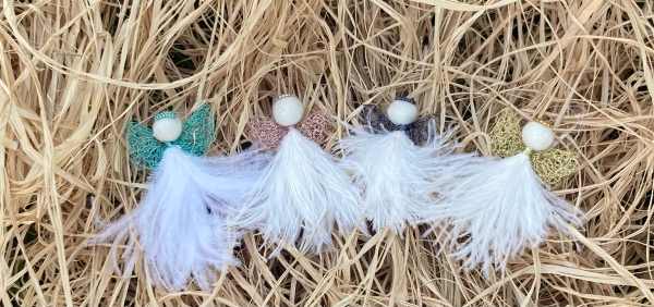 Englene kommer i en liten lukket plastpose. Strutsefjærene kan da framstå nokså "flate". Men får de luft under vingene, bokstavelig talt, så vil fjærene bli voluminøse. Og jo lenger de henger i luft, dess mer vil de bruse!